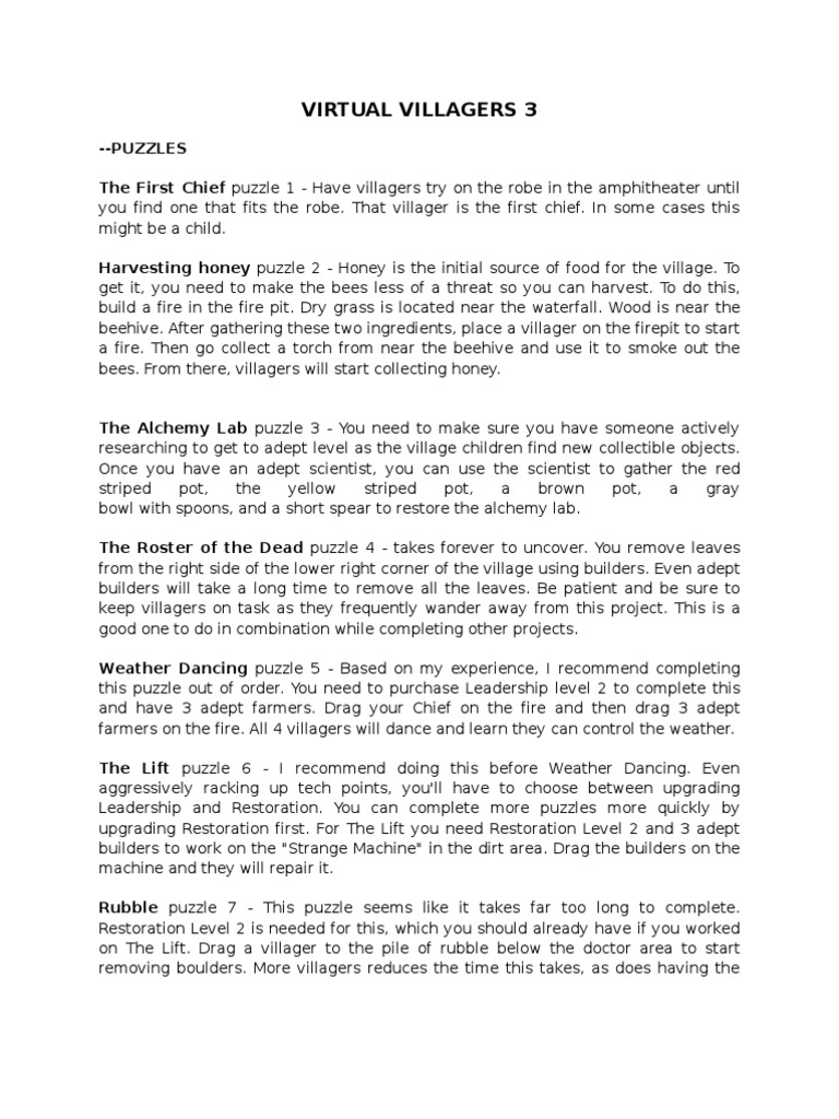Http Www Ldwforums Com Tips Tricks Virtualvillagers3 Official Ldw Guide Pdf from Talking about virtual villagers 3: Другие видео об этой игре. Nead level 2 reserch master in sci + heathen master in sci, put your. Keep in mind that these puzzles do not have to be done in order. We've updated virtual villagers 3: You can easily get an adept builder by doing the first part of. You remove leaves from the right side of the lower right corner of the village using builders. Tips, strategies and solved puzzles for virtual villagers 1: